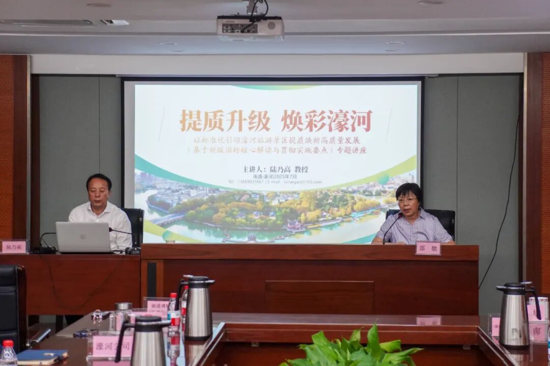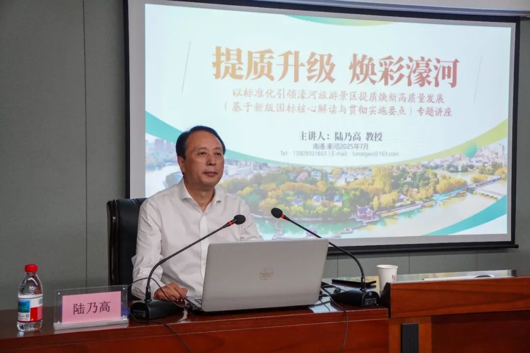 7月11日下午,国家级旅游规划专家陆乃高教授应邀到南通市濠河景区管理办公室,为濠河办和景区各相关单位负责同志作“提质升级 高质发展——以标准化引领南通濠河景区高质量”专题讲座。